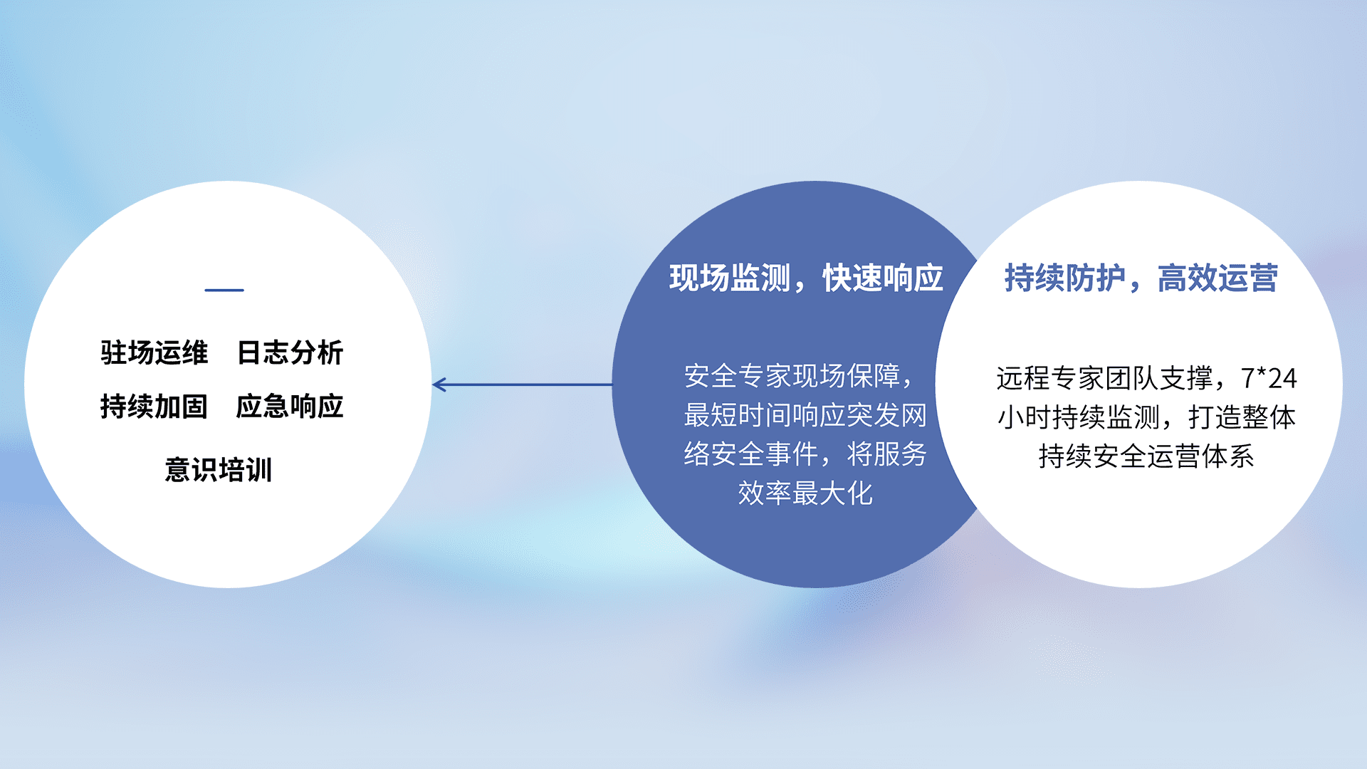 针对客户行业特性,,,,提供专属的一站式安全管理服务,,帮助客户全面感知网络空间威胁,,,,通过安全专家的线上、、、、线下防护支持,,,,实现风险闭环,,,,将安全保障常态化,,,,为客户打造常态化安全运维运营服务。。。